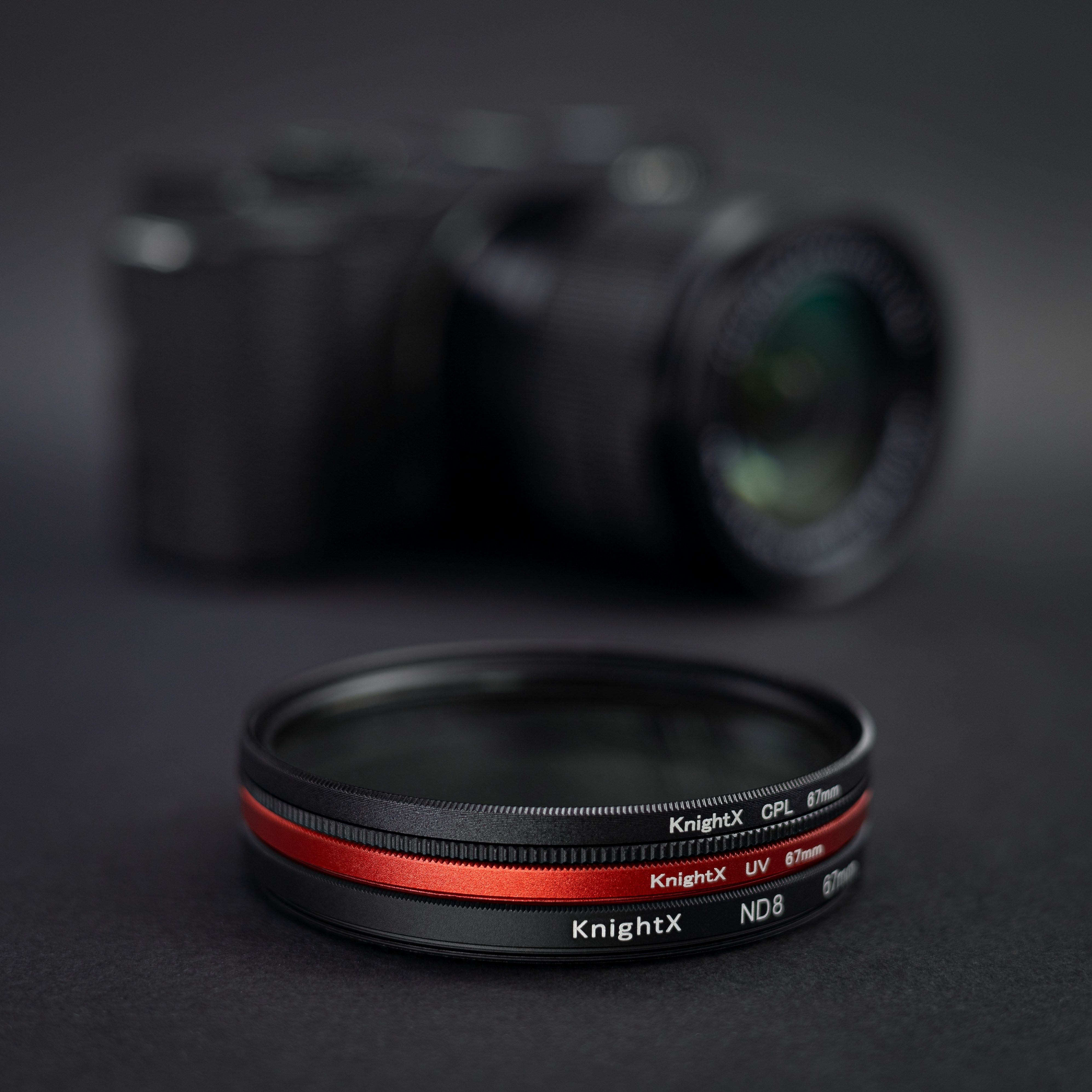 Set de filtre foto KnightX Esential Red 72mm include 3 filtre esențiale pentru protecția obiectivului, controlul luminii și obținerea unor efecte fotografice creative: